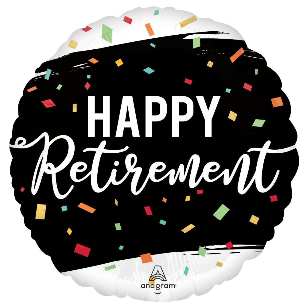 Continue shoppingAccent your retirement themed party with this 18" round foil balloon featuring Happy Retirement! print with multicolored confetti.